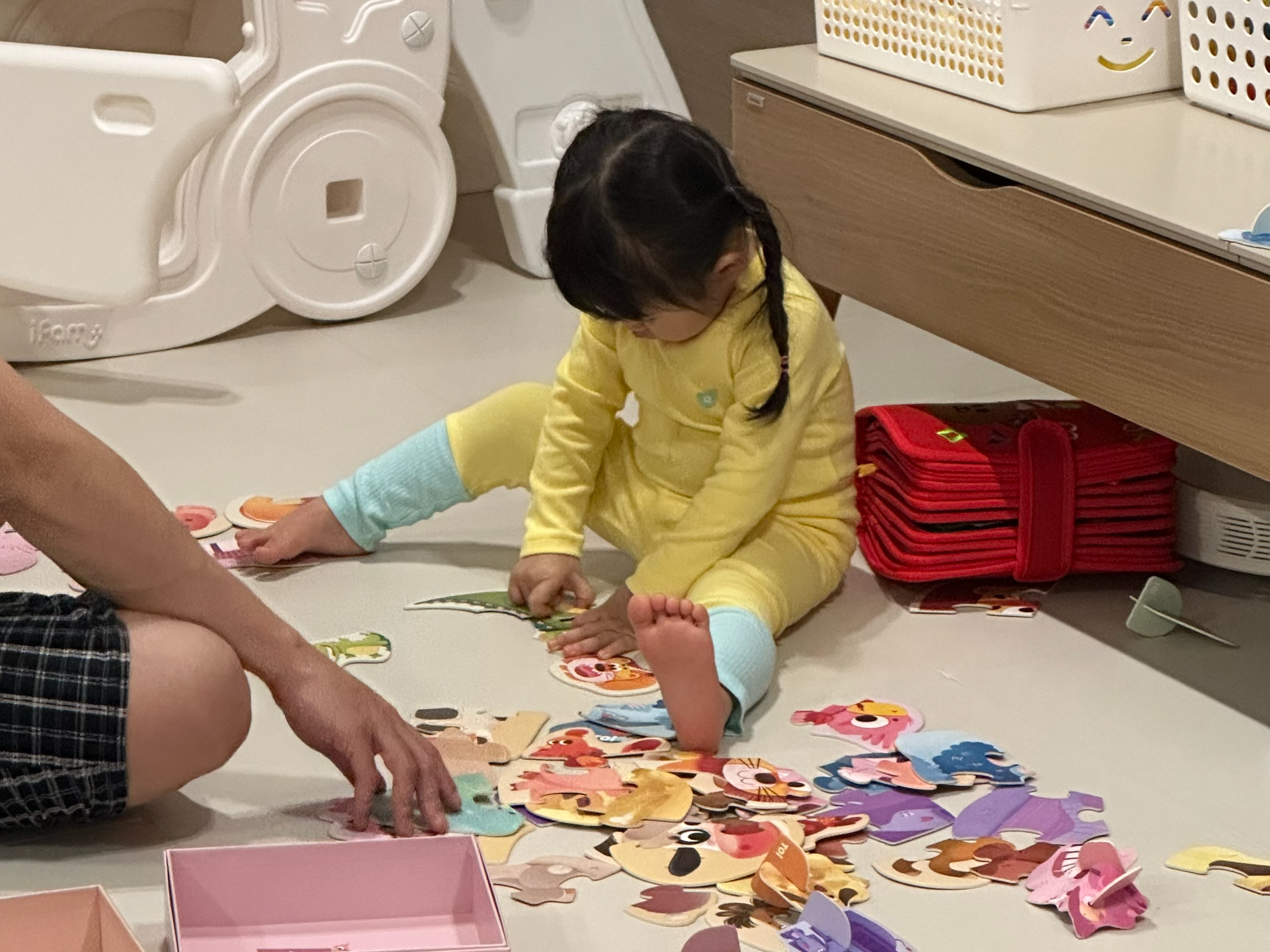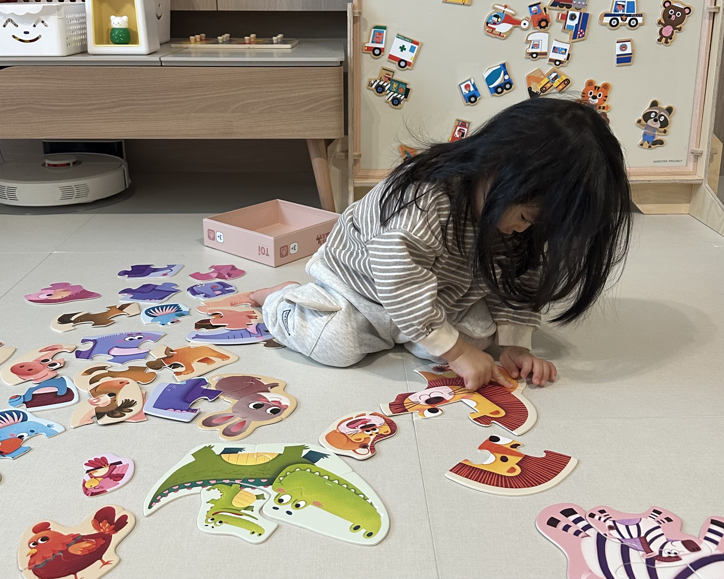 💡 육아 팁: 1단계는 부모와 함께 시작해서 익숙해지면 혼자 도전하게 해보세요. 아윤이는 1단계를 빠르게 익히고 농장동물, 야생동물 퍼즐을 맞추며 놀고 있어요. (2단계는 조각 수가 확 늘어난 느낌이라 조금 더 익숙해지면 넘어가려구요!) 퍼즐을 맞추며 즐겁게 놀면서도 집중력이 쑥쑥 자라는 게 느껴지네요 : )